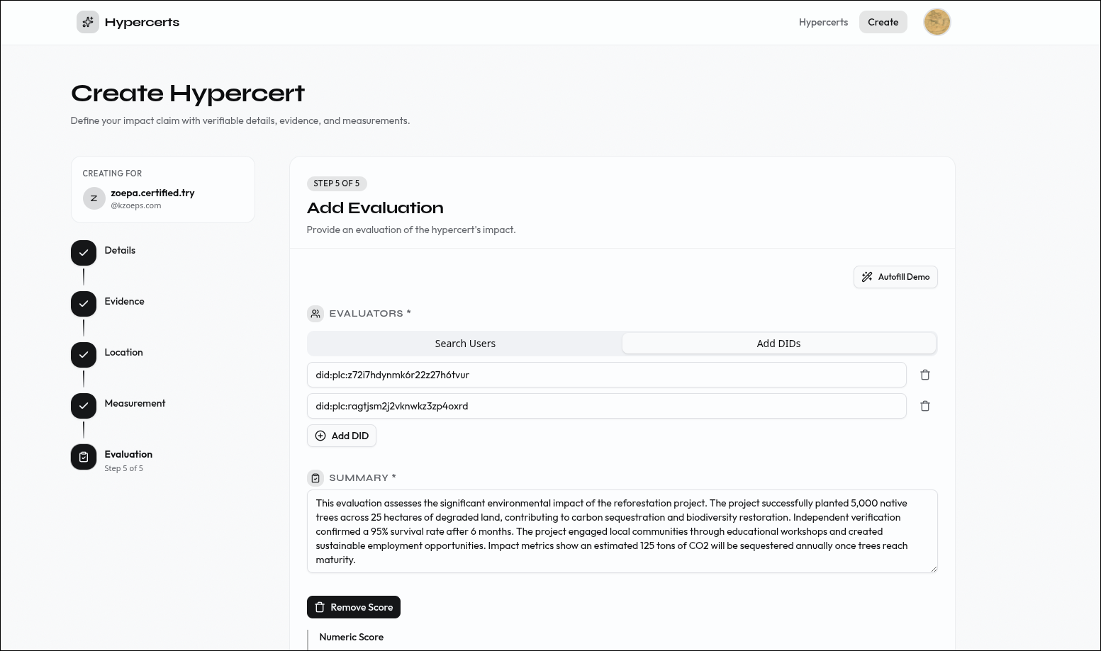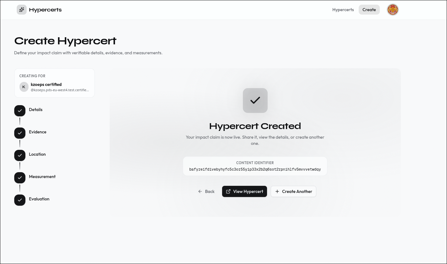 Third parties can now evaluate your hypercert by creating evaluation records and measurements on their own PDS.